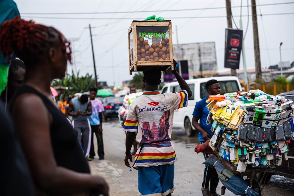 A vibrant fusion of Lagos street food culture with fine dining presentation, capturing the essence of Nigeria's bustling food scene.